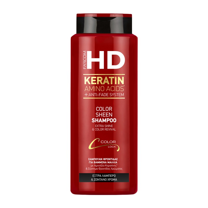 Σαμπουάν HD Color Sheen για βαμμένα μαλλιά. Extra Shine & Color Revival. Με αμινοξέα κερατίνης & σύστημα κατά του ξεθωριάσματος.