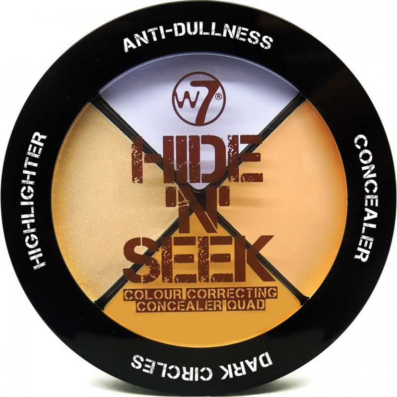 To Hide 'n' Seek της W7 είναι μια παλέτα με δύο concealer, ένα corrector για φωτεινότητα και ένα κρεμώδες highlighter.Δίνει τη δυνατότητα μίξης των χρωμάτων για τέλεια κάλυψη και λάμψη.