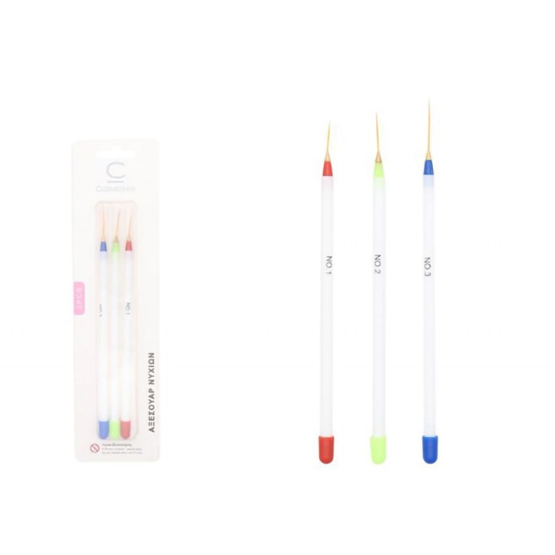 Σετ 3 πινέλα liner για διακόσμηση νυχιών και nail art, της Cosmofan.