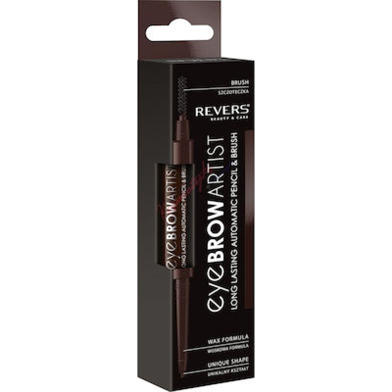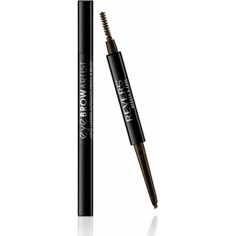 Το Revers Eye Brow Artist είναι ένα αυτόματο κέρινο μολύβι φρυδιών με ένα βουρτσάκι που επιτρέπει το επαγγελματικό styling του σχήματος, του χρώματος και της πυκνότητας των φρυδιών. Αποτελεί ένα μολύβι μοναδικού σχήματος που επιτρέπει την τέλεια και εξαιρετικά ακριβή ανάδειξη των φρυδιών. Η κέρινη φόρμουλα είναι εξαιρετικά ανθεκτική και κατά της μούχλας, που εγγυάται μια λαμπερή εμφάνιση για όλη την ημέρα. Είναι εφοδιασμένο με ένα πρακτικό βουρτσάκι, το οποίο χτενίζει και δίνει στυλ στα φρύδια. Δεν απαιτεί ακόνισμα από ξύστρα.