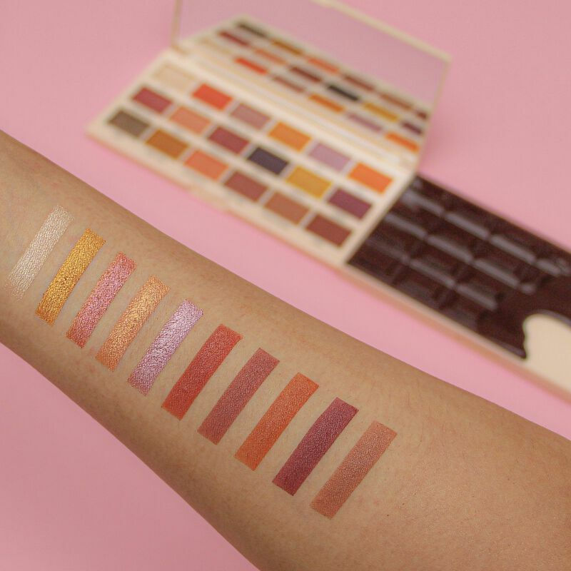 Η I Heart Revolution Caramel Nudes Chocolate Palette αποτελεί ακόμα μία γευστική προσθήκη στην συλλογή από την σειρά chocolate. Η παλέτα, με άρωμα σοκολάτας, αποτελείται από 18 ουδέτερες αποχρώσεις ματ και shimmer. Ανακατέψτε, ταιριάξτε και συνδυάστε τους τόνους για να δημιουργήσετε μια απίθανη εμφάνιση.