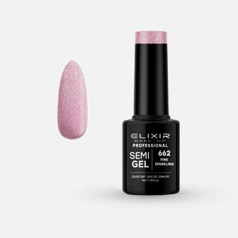 Elixir Make Up Ημιμόνιμο Βερνίκι Νυχιών Semi Gel 662 (Pink Sparkling) 8ml