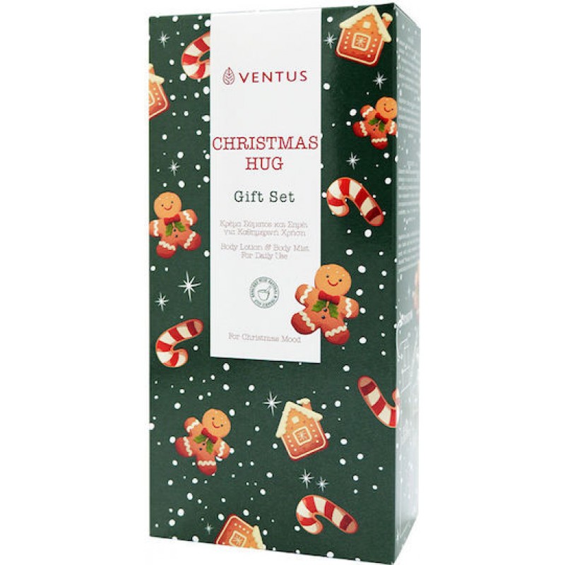 Το Ventus Christmas Hug Gift Set περιλαμβάνει μια λοσιόν σώματος 250ml και ένα αρωματικό σπρέι σώματος 100ml, και τα δύο με ένα ελκυστικό άρωμα φρεσκάδας .